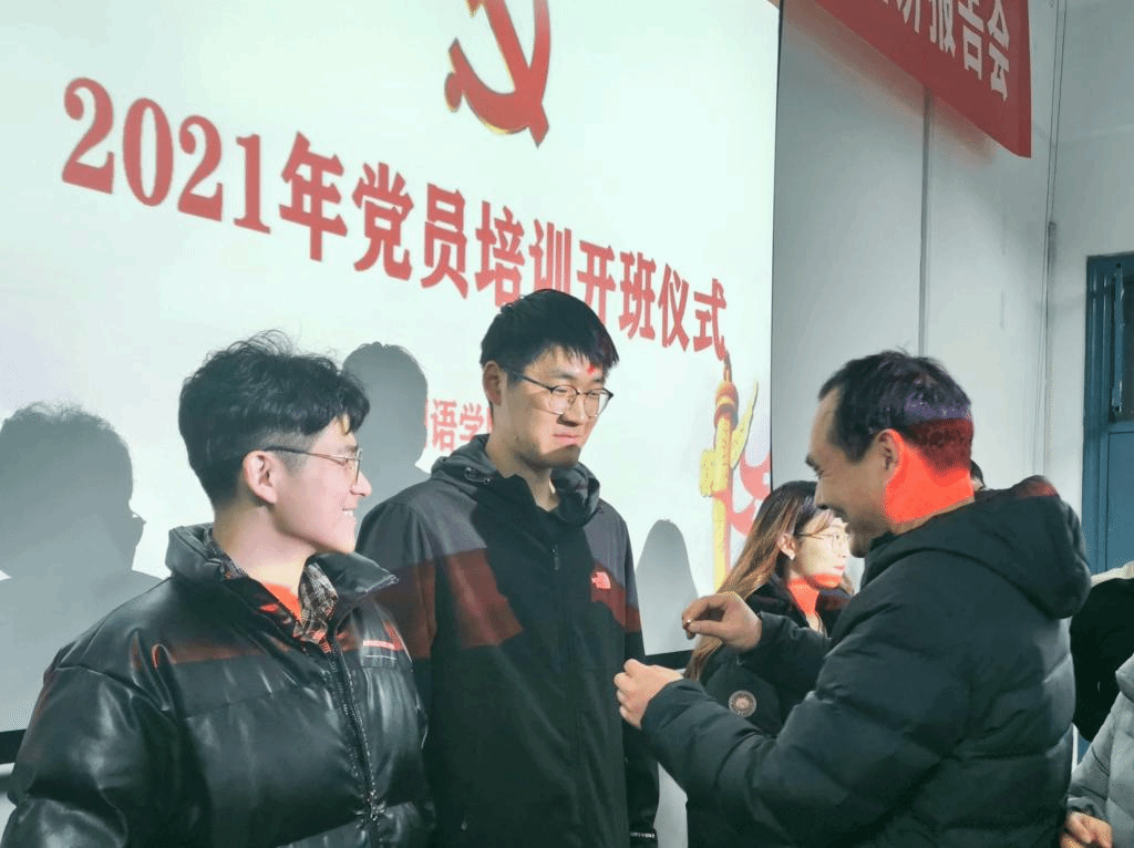 开班仪式在庄严肃穆的《国际歌》中拉开帷幕。王淑杰宣读了参加本次培训的新党员名单;教师党员代表们为新党员佩戴党徽;王淑杰带领培训班全体党员面向党旗进行新党员入党宣誓,老党员重温入党誓词活动;随后,龚俊朋宣读《外国语学院分党校2021年度党员培训班培训计划》,并要求参训人员要遵守党章规定,严格要求自己。