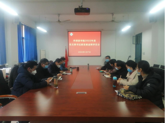 为进一步落实管党治党政治责任,夯实基层党建工作、推进全面从严治党向基层延伸的重要举措,大抓支部建设,1月7日下午,外国语学院在7211会议室召开2022年度党支部书记抓党建述职评议考核会。学院班子成员、党委委员、各党支部书记参加了会议。会议由学院党委书记张忠迪主持。