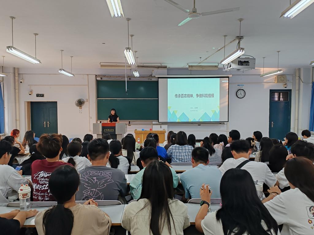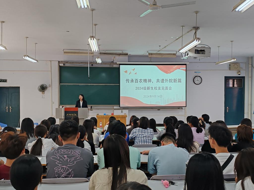 9月14日下午,外国语学院在10#合二教室召开“传承百农精神,共谱外院新篇”专题报告会,会议由2024级新生辅导员朱晋妮主持,2024届全体新生参会。