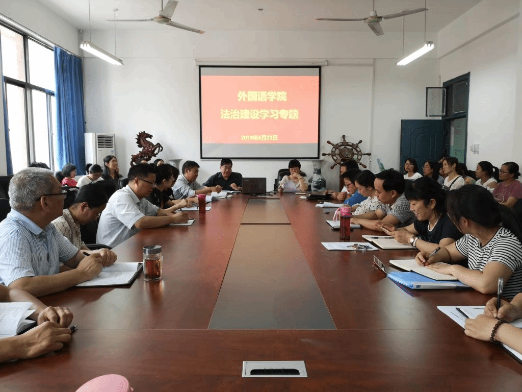 5月23日下午,外国语学院法治建设专题学习会在7211会议室举行,我院党政领导和全体教工参加了学习会。会议由院党委书记徐兆栋主持。