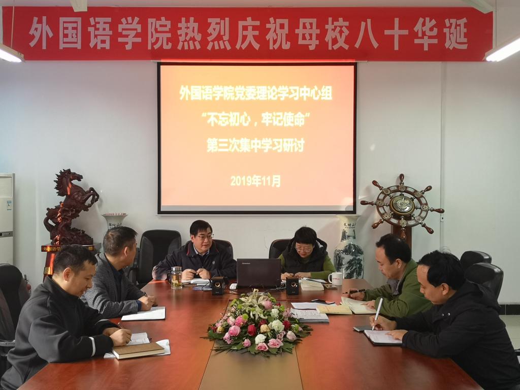11月8日至10日,外国语学院党委理论学习中心组进行了“不忘初心、牢记使命”主题教育第三次集中学习研讨。