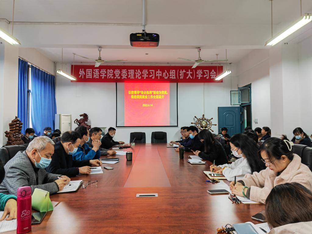 4月14日下午,外国语学院召开全体教师会议,传达校领导访企拓岗促就业工作会议精神。会议由院党委书记张忠迪主持。