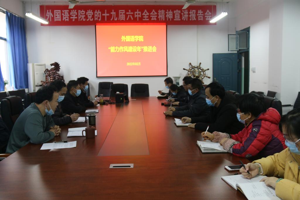 2月25日下午,外国语学院在7号楼211会议室召开 “能力作风建设年”活动推进会,对学院开展“能力作风建设年”活动进行再安排和再部署,以保障活动高质量推进、学院高质量发展。学院全体领导、党委委员、教工党支部书记参加了会议。