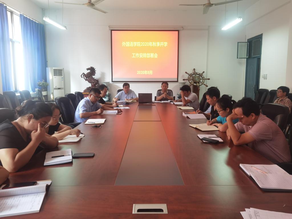 8月30日上午,外国语学院2020年秋季新学期工作安排部署会在7211会议室召开,学院领导班子及全体副科级及其以上干部参加会议。