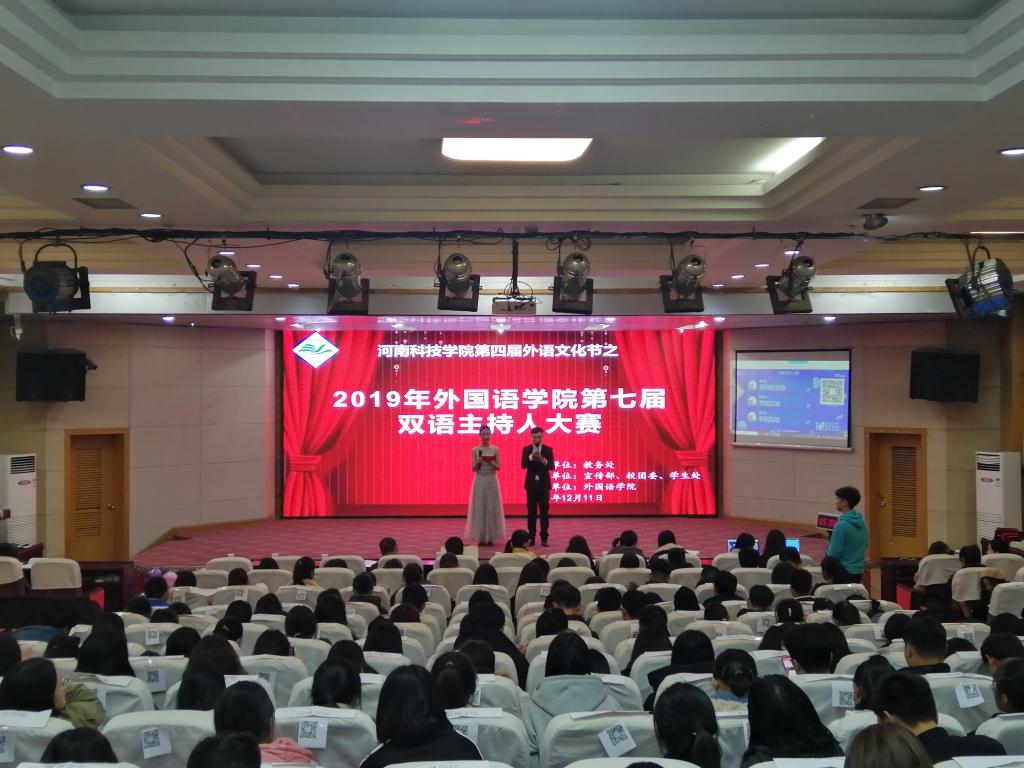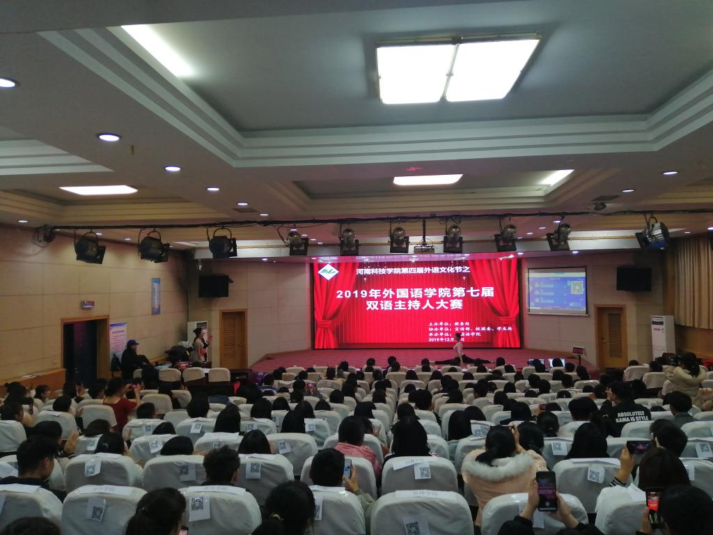 为增强大学生的双语表达能力,提高大学生综合素质,促进中外文化交流,12月11日,由教务处主办,校党委宣传部、校团委、学生处协办,外国语学院承办的第四届外语文化节双语主持人大赛在图教201举行,教务处、宣传部、外国语学院等单位负责人及各学院学生代表300余人观看了比赛。