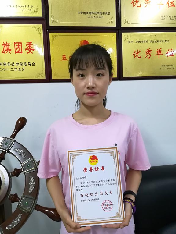 近日获悉,我院英语(翻译)162班团支部书记李连凡同学在共青团河南省委举办的河南省大中专学校百优十佳“魅力团支书”“活力团支部”评选活动中被评为河南省“百优魅力团支书”。