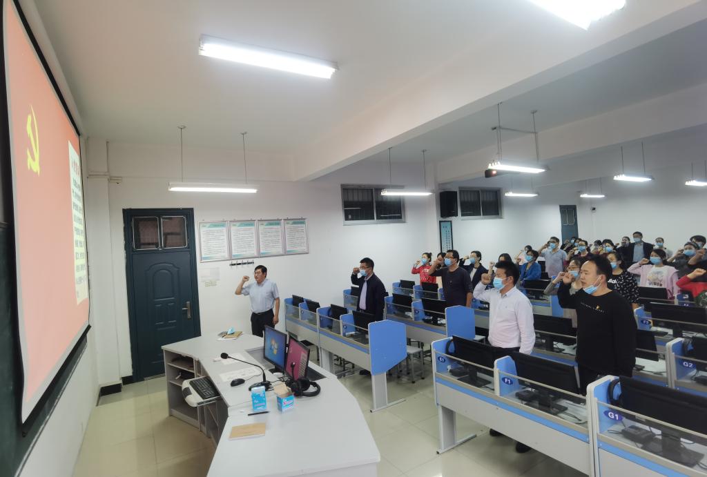 会上,全体党员共同观看了《工资表里的“秘密”》警示录,涉案财务人员谢某犯罪事实和痛哭流涕反省忏悔,给在场观看的人员上了一堂生动的以案促改警示教育课。学习结束后,由徐兆栋领誓,全体党员面对党旗,重温入了党誓词。