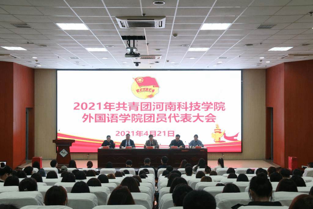 4月21日中午,外国语学院在图书馆报告厅召开共青团河南科技学院外国语学院团员代表大会。外国语学院党委书记徐兆栋、党委副书记龚俊朋出席大会,团委书记张高峰、辅导员王淑杰、王欣欣及团员代表180多人参加大会。