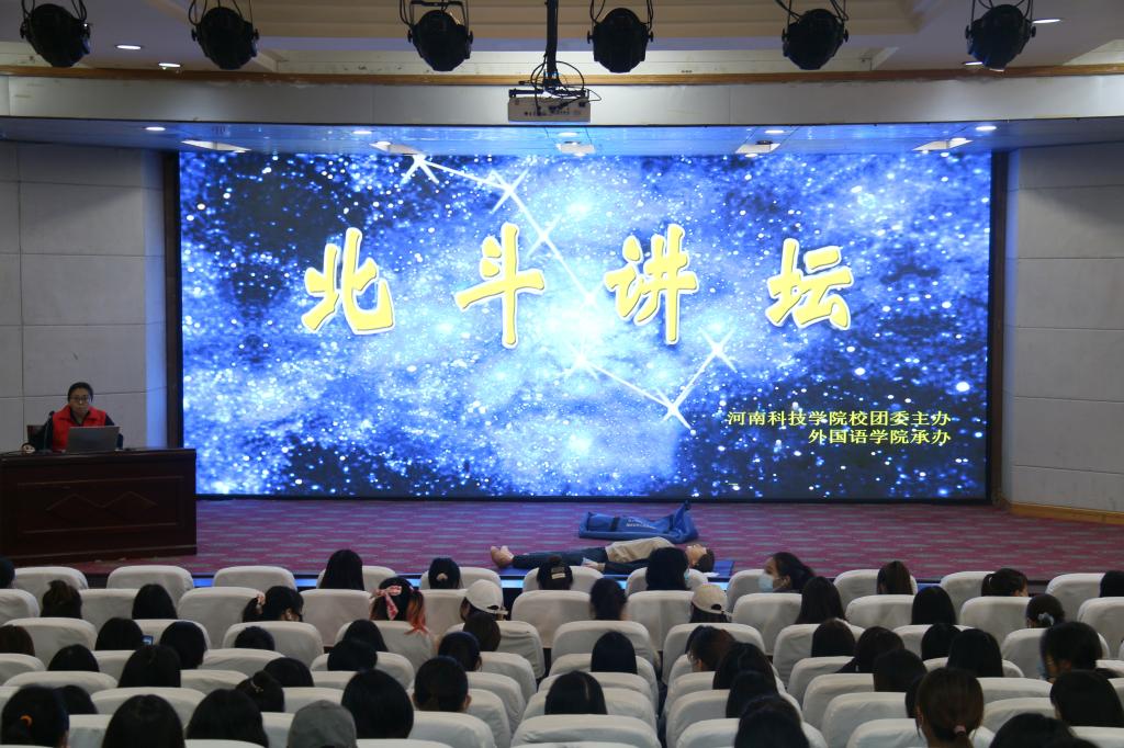 11月12日下午,由校团委主办,外国语学院承办的“北斗讲坛”在图教201报告厅举行。河南省捐献造血干细胞志愿服务队大队副队长段华担任讲坛主讲人,外国语学院团委书记张高峰、兼职辅导员李凤云及300多名学生参加了活动。