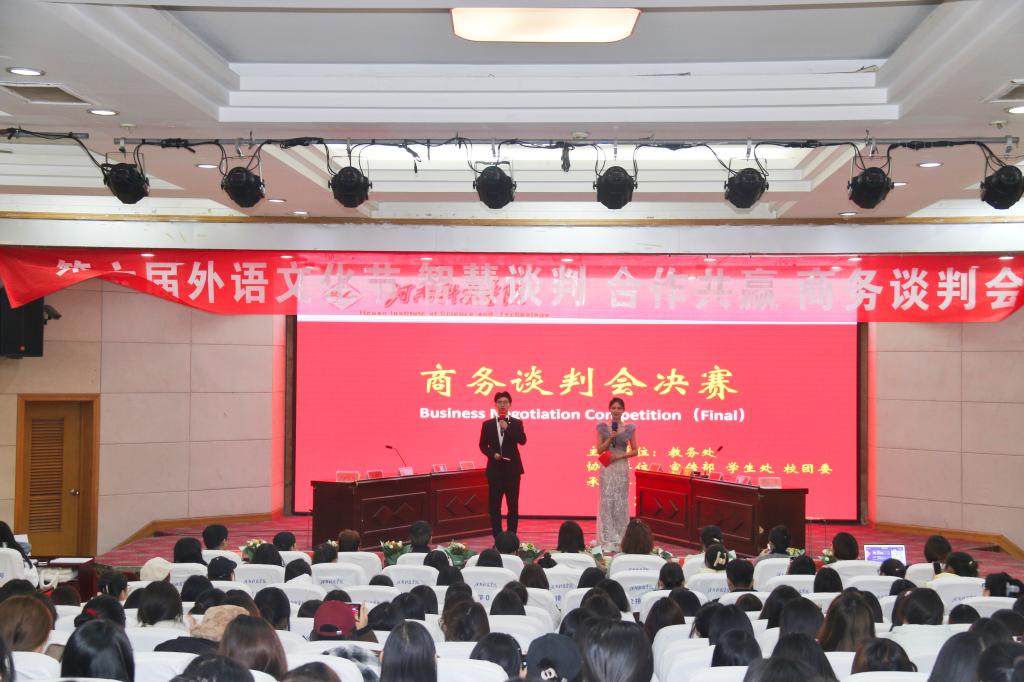为强化学生的英语运用能力,培养谈判技能,提升团队协作精神,增强核心商务素养。11月23日晚七点,第六届外语文化节之商务谈判会决赛在图教201举行,教务处副处长赵高丽、国际教育学院副院长王君君、外国语学院党委副书记吴峰和副院长张志超出席本次比赛。