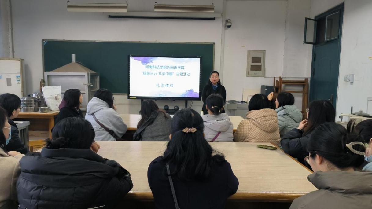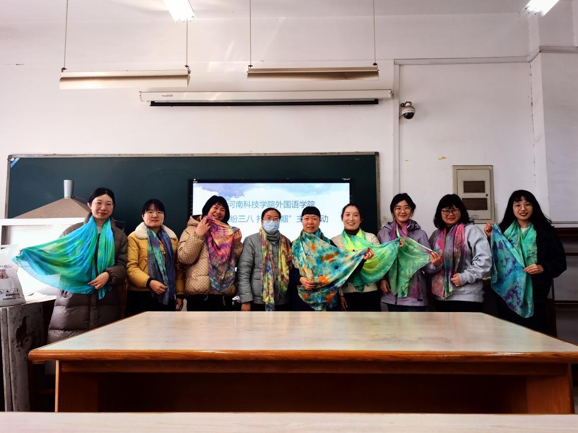 三月阳光明媚,生机勃勃,校园里到处洋溢着春的气息。为庆祝“三八”国际妇女节,丰富女教师的文化生活,外国语学院组织女教师开展“缤纷三八”主题扎染体验活动。