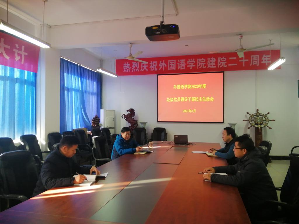 按照学校《关于认真开好2020年度处级以上党员领导干部民主生活会的通知》要求,外国语学院于1月18日在7#211会议室召开了处级党员领导干部民主生活会。