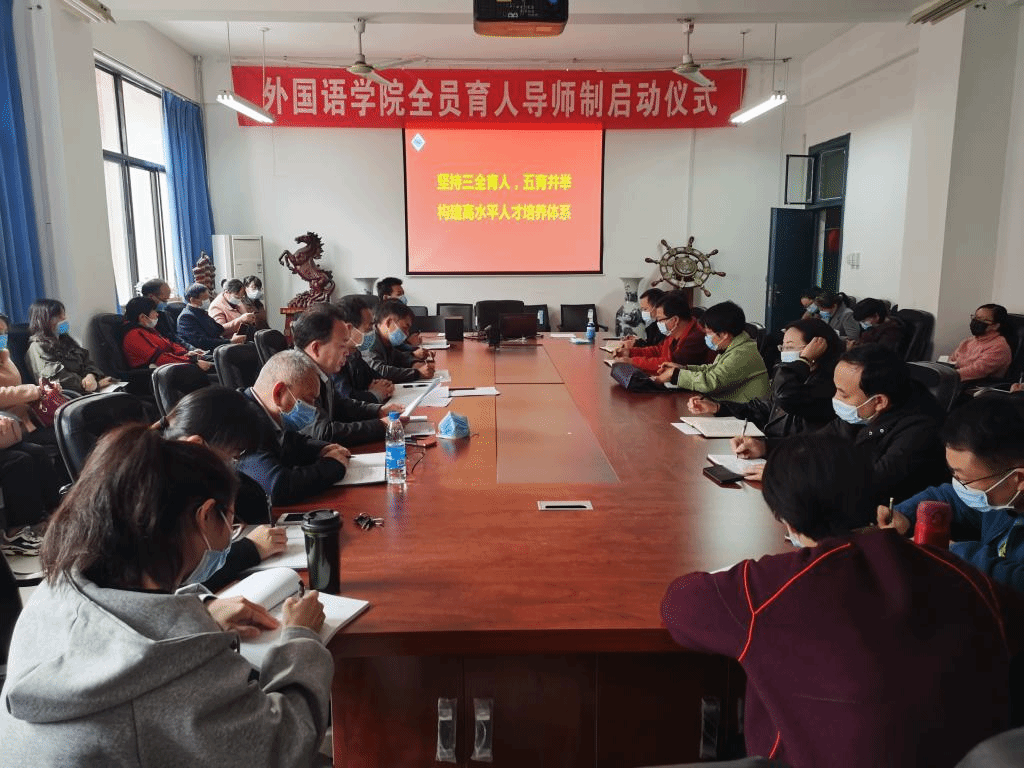 为落实立德树人根本任务,全面推进“三全育人”综合改革,进一步发挥全院教职工在学生成长成才过程中的指导和教育作用,构建高水平人才培养体系,11月4日下午,外国语学院在7#211会议室举行全员育人导师制启动仪式,全面启动全员育人导师制。