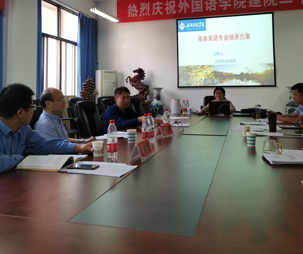 商务英语教研室主任毕秀英从行业调研、培养目标及依据、课程设置、毕业要求、实践环节等方面汇报了商务英语专业培养方案的修订工作。曹德春教授从人才培养目标、课程体系设置与构建、实践教学等方面提出了建设性的指导意见。