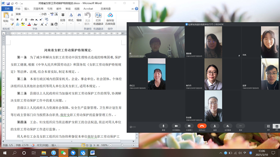 学院工会小组组织女教工认真学习《河南省女职工劳动保护特别规定》等法律法规,通过学习,大家感受到工会大家庭的温暖,增强了责任意识和法律意识。学会分会还教师发放了卫生用品。
