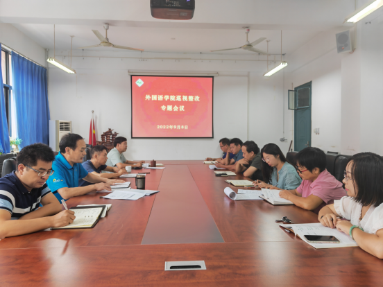 9月8日下午,外国语学院在7211会议室召开巡视整改专题工作会。学院领导班子成员、党委委员、各支部书记参加了会议。会议由院党委书记张忠迪主持。