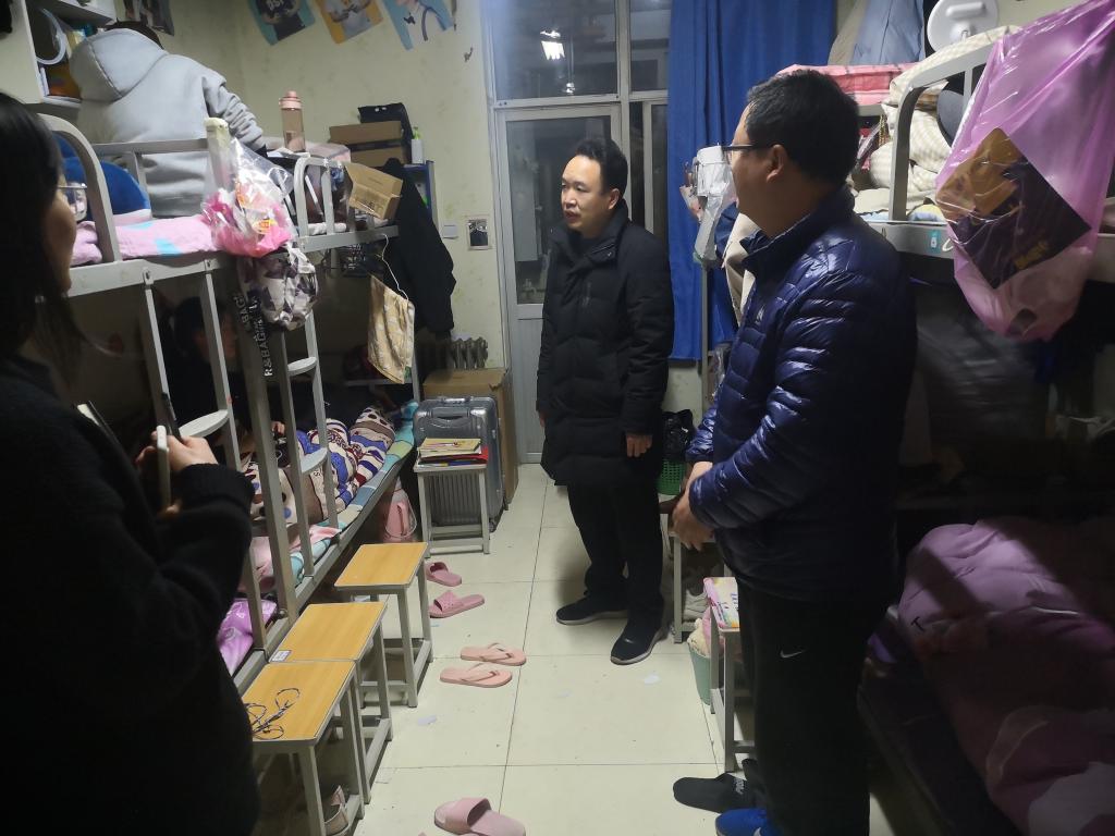 为落实落细疫情防控工作,抓好学生安全教育,深入了解学生返校情况。3月7日晚上,学院党委副书记龚俊朋带领团委书记张高峰到学生宿舍走访看望返校学生。