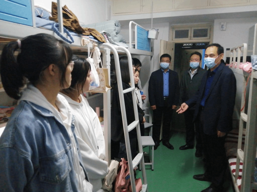 为进一步了解新生对大学生活的适应情况,关心关爱新同学,10月13日晚,外国语学院党委书记张忠迪、院长李会民、党委副书记龚俊朋、副院长程建锋、团委书记张高峰、辅导员王淑杰、张萌前往6号、8号宿舍楼,了解新生入住情况,为新生答疑解惑,与新生进行了面对面交流。