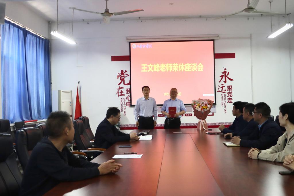 学院负责人表示希望王文峰老师退休后继续关心和支持学院的发展,常回家看看,为学院的发展献计献策,提携帮助青年教师成长。