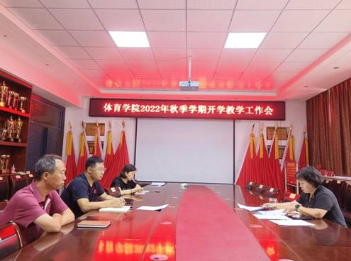 8月26日上午,体育学院在8号教学楼8114会议室召开2022年秋季学期开学教学工作会。学院院长雷鹏,副院长高泳、于振勇,办公室工作人员参加了会议。