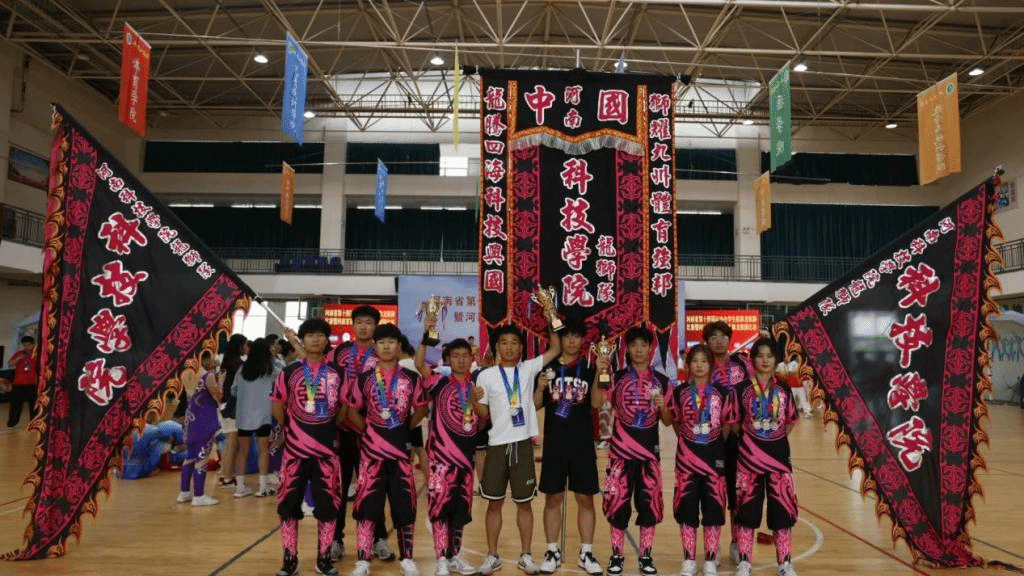 我校作为河南省学生体育总会舞龙舞狮协会副主席单位,大力发展舞龙舞狮项目的同时,积极参与本次比赛,由体育学院院长高泳任领队,岳修专和刘亮老师担任教练员,共参加自选、传统、竞速3项竞赛项目,经过三天激烈的角逐和专家评审,分别获得2项冠军和1项亚军的佳绩。