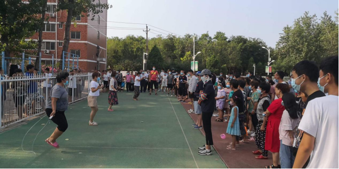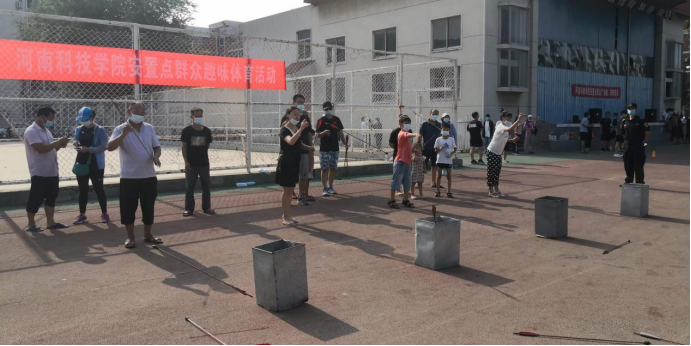 近日,我校在积极开展汛灾自救的同时,安置2000多名卫辉市受灾群众,努力为全市防汛救灾工作提供帮助。为使安置点受灾群众保持乐观向上的生活情绪,用积极快乐的心态迎接美好的明天,用体育激发战胜灾情的信心与力量。7月31日上午我院召开河南科技学院安置点群众体育活动部署会,安排安置点群众的体育锻炼活动事宜,全体教师积极响应,主动参与其中,组织了安置点群众广场舞培训、群众趣味体育活动、少年儿童体育课教学等系列活动,受到群众一致好评。