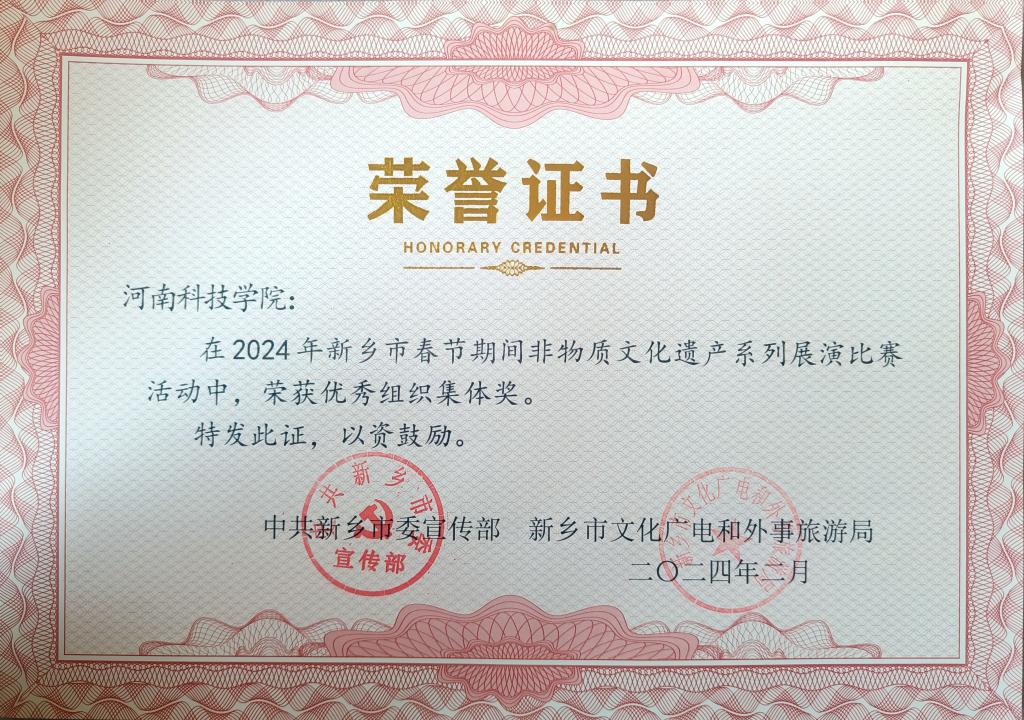 我校共派出两支舞狮队参加了本次比赛,历经两天的激烈比拼,最终我校舞狮队分别荣获一、二、三等奖,我校获新乡市春节期间非物质文化遗产系列展演比赛“优秀组织集体奖”、“体育道德风尚奖”,为河南科技学院争得了荣誉,也为今后我校龙狮项目的发展奠定了坚实基础。