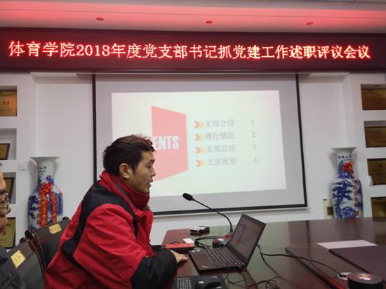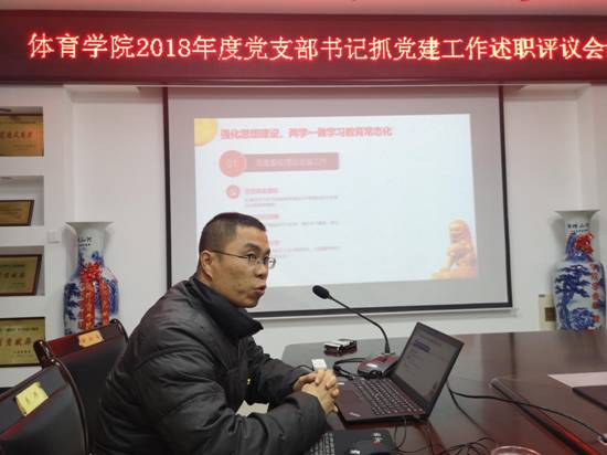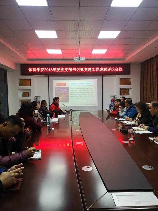 根据校《关于推进“两学一做”学习教育常态化制度化的实施方案》(校党字〔2017〕19号)文件和《关于做好2018年度党支部书记抓党建工作述职评议考核的通知》文件精神,12月26日,体育学院在学院会议室召开2018年度党支部书记抓党建工作述职评议会议,体育学院党委书记徐现峰、党委副书记李志峰、学院党委委员、党支部书记、支部委员以及党员代表30余人参加了会议,会议由党委书记徐现峰主持。