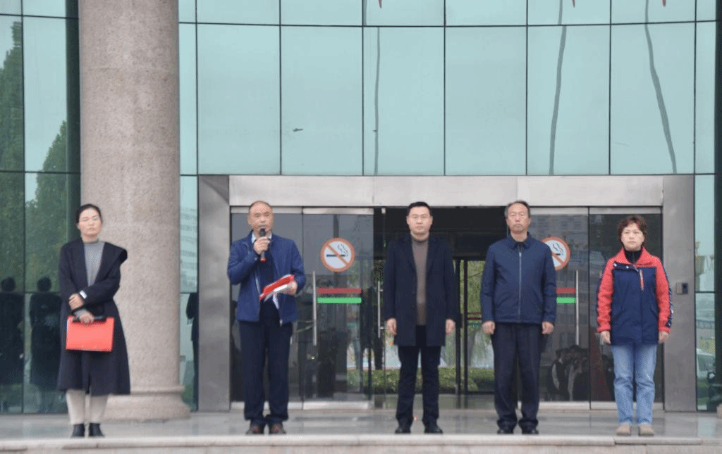 七时整,升国旗仪式正式开始,国旗护卫队整齐划一、铿锵有力的脚步声由远而近,队员昂首挺胸,护送国旗威武前行。伴随雄壮的国歌奏响,五星红旗冉冉升起,全院师生肃立,行注目礼,共唱国歌。