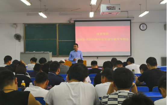 5月17日上午,体育学院于8#二教学楼召开2019届毕业生诚信教育专题会,团委书记郭全法、2015级主要学生干部、团委学生会资助中心部长白洁琼以及学院19届贷款毕业生参加了此次会议。