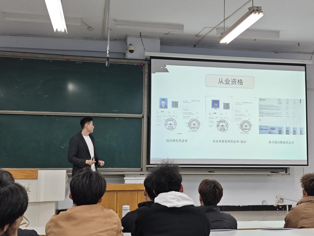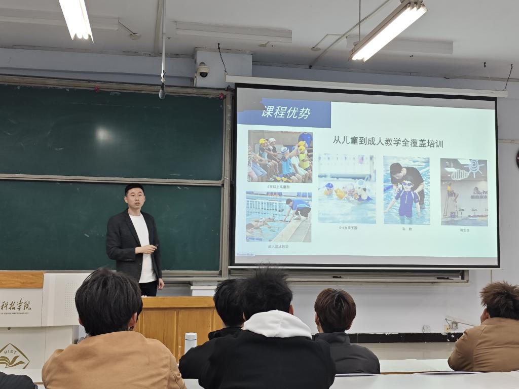 为深化产教融合,助力体育专业学生高质量就业,3月14日晚,体育学院在九号楼合一教室成功举办“游泳培训行业发展及就业前景专题宣讲会”。国家一级游泳教练员、哈珀企业教学总监施尧担任主讲,围绕学龄前儿童游泳教练员的教学实践、行业机遇及职业标准展开深入分享,近百名体育专业学生参会。