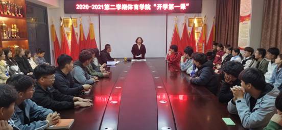 为引导我院学生强化使命担当,坚定理想信念,厚植家国情怀,以奋进姿态开启2021年春季学期新征程,3月16日晚,体育学院院长雷鹏在8114会议室为学院2019级学生讲授春季学期开学第一课。