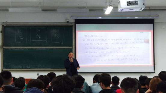 3月17日晚,体育学院党委书记徐现峰在八合一教室为学院2018级全体学生讲授春季学期开学第一课。