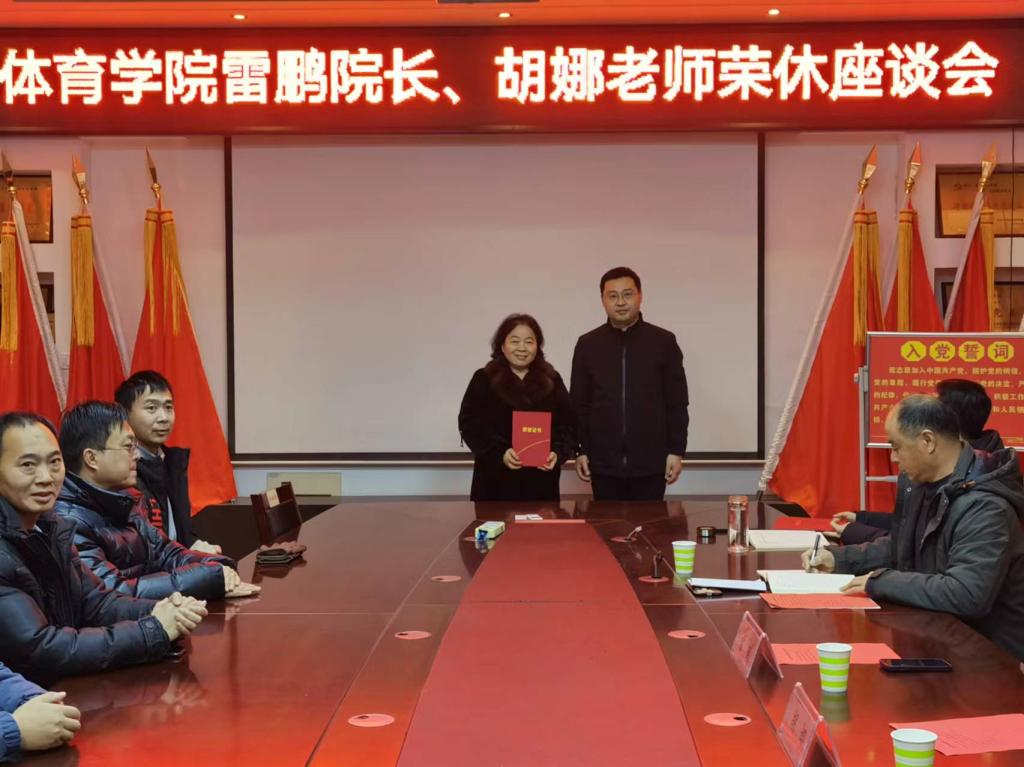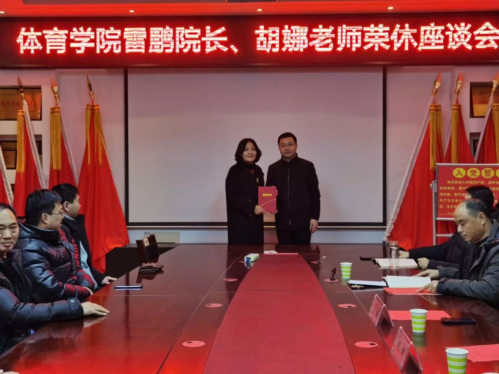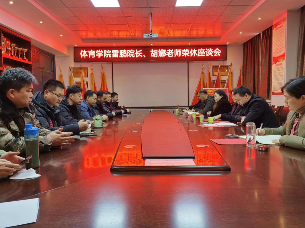2月3日,体育学院在8114会议室举行雷鹏院长、胡娜老师荣休座谈会。学院党政领导班子、科级以上干部、教师代表参加了座谈会。