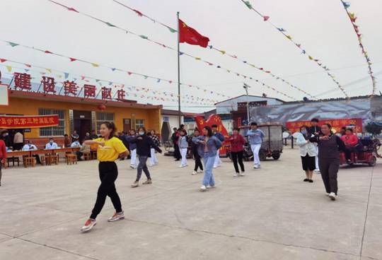 为了营造庆祝建党100周年浓厚氛围,4月23日上午,在体育学院党委副书记李志峰的带领下,卫琳等10名志愿者联合新乡市机关事务中心来到卫辉市后河镇赵庄村开展“健康中国,一起舞吧”中国排舞公益行活动,用他们独特的方式表达对党的感激,对祖国的热爱。