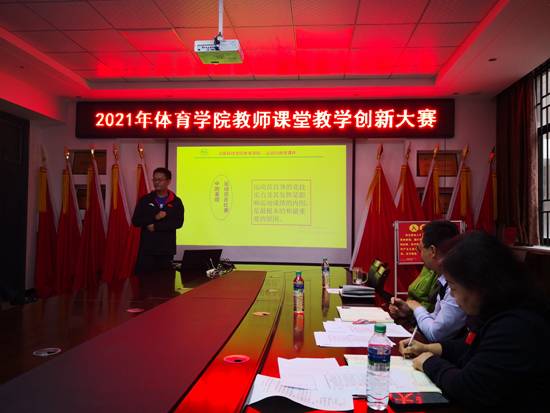 为引领广大教师转变教育教学理念、强化课程思政、更新教学内容、创新教学方法、改进教学评价、推进现代教育技术与课堂教学深度融合,不断提升人才培养质量。根据学校下发的《关于举办2021年教师课堂教学创新大赛的通知》精神,学院高度重视制定了《关于举办2021年体育学院教师课堂教学创新大赛的通知》,并积极动员实施。10月10日下午,我院在学院会议室和研究生研讨室举行了2021年学院教师课堂创新大赛。院长雷鹏、副院长高泳、于振勇、院级督导尚保春、教学秘书蔺文革、教师代表周爱玲作为评委出席,青年教师共13人参加竞赛活动。