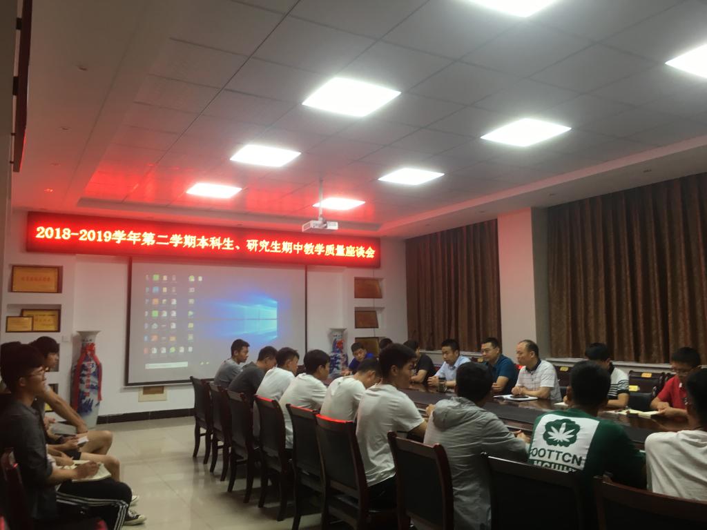 根据学校和教务处的统一部署,为了提高课堂教学质量,促进优良学风建设,体育学院期中教学质量座谈会于5月28日晚上在8号教学楼8114会议室召开。党委副书记李志峰、副院长高泳、教学秘书、研究生秘书、专业实践教研室主任、团委书记、教师代表及学生代表40余人参加了此次座谈。