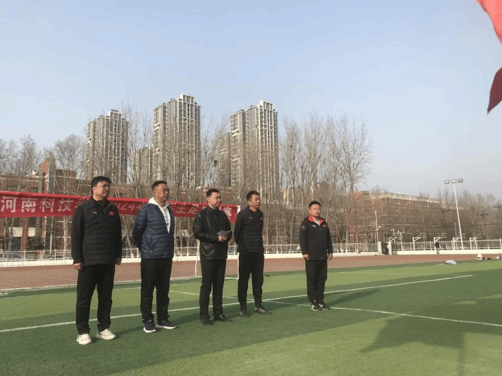 3月18日,河南科技学院2024年大学生足球联赛开幕式在东操场举行,体育学院院长高泳参加开幕式,开幕式由教学秘书霍磊主持。
