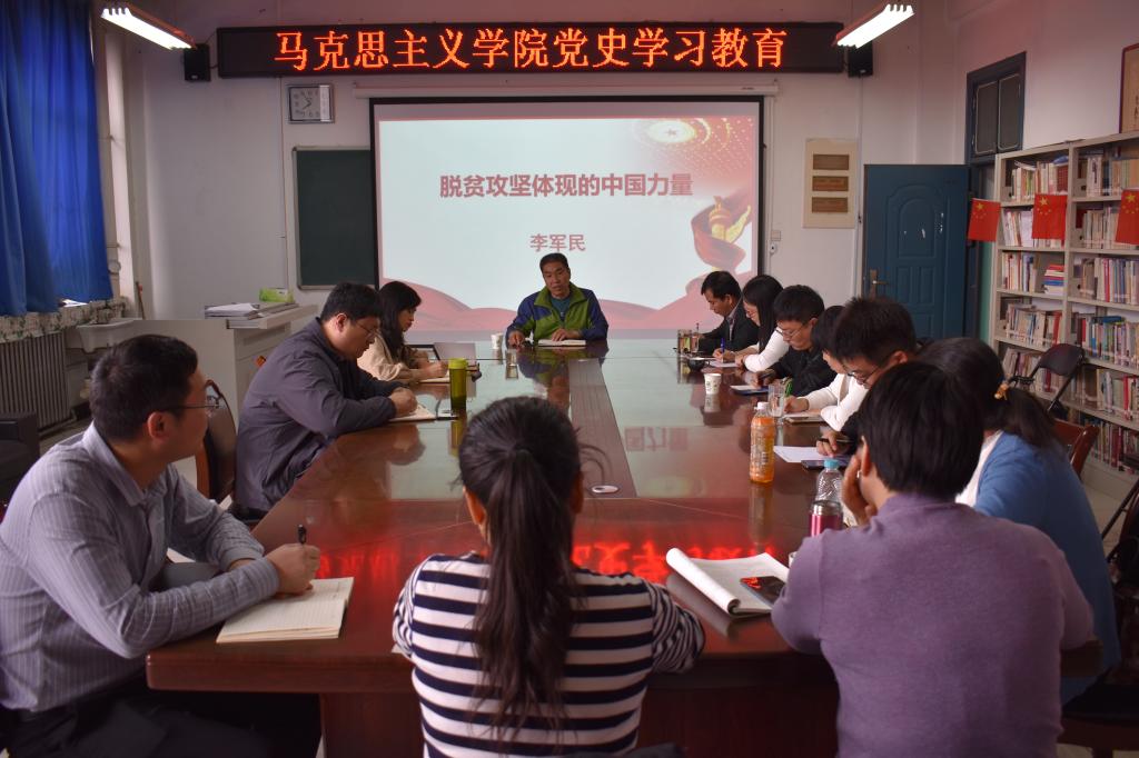 为扎实推进我院党史学习教育,特邀请数学科学学院李军民副书记在8508会议室作主题为“脱贫攻坚体现中的中国力量”讲座。由王冰蔚院长主持,学院党政领导班子及学术团队人员参加了会议。