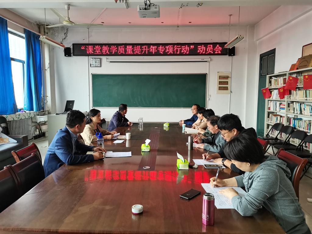 为贯彻落实《河南省本科高校“课堂教学质量提升年专项行动”实施方案》(教办高〔2022〕33号)精神,结合学校“作风能力建设年”活动要求,4月22日下午,马克思主义学院在8号教学楼508会议室召开“课堂教学质量提升年专项行动”动员会。学院领导班子成员、各教研室主任、教学秘书及部分教师参加了会议。会议由院长王冰蔚主持。