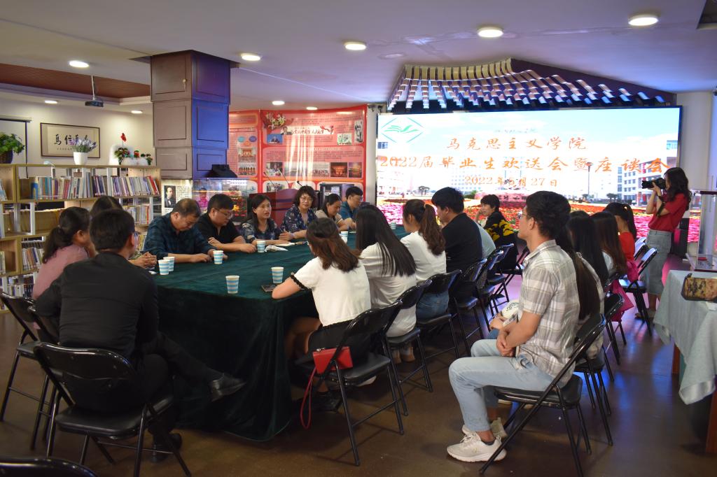 5月27日上午,马克思主义学院2022届毕业生欢送会暨毕业生座谈会在国情国史体验馆顺利举行。学院领导班子成员、导师代表、全体在校研究生参加会议,会议由副院长孙喜英主持。