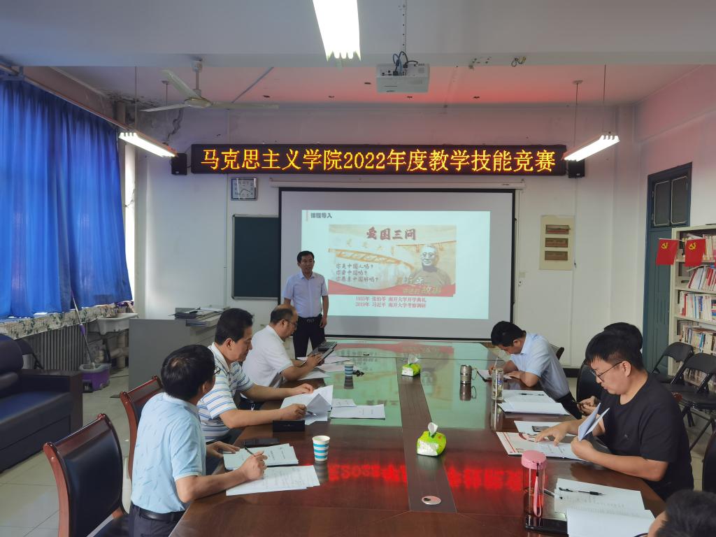 为贯彻落实“能力作风建设年”活动要求,进一步提升广大教师的教学能力和业务水平,根据河南科技学院《关于开展2022年度教学技能竞赛活动的通知》要求,马克思主义学院于6月29日下午在学院508会议室举行了2022年度教学技能竞赛。此次比赛邀请了动物科技学院副院长陈金山、文法学院副院长王振军、信息工程学院副院长高国红担任评委。比赛由马克思主义学院副院长、工会主席刘中元主持。