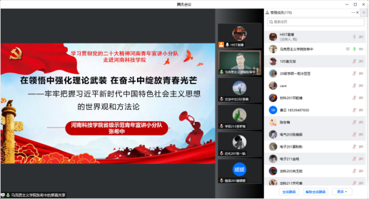 11月22日,马克思主义学院教师张希中博士通过腾讯会议为学校共青团干部、青马研习社会员170余人作党的二十大精神宣讲报告。