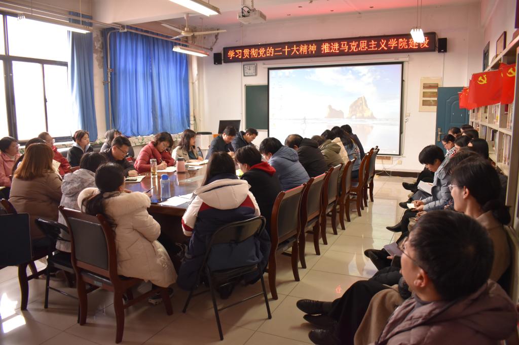 2月17日下午,马克思主义学院在8508会议室召开“学习贯彻党的二十大精神,推进马克思主义学院建设”工作会议。会议由院长王冰蔚主持,学院党政班子成员和全体教师参加了会议。