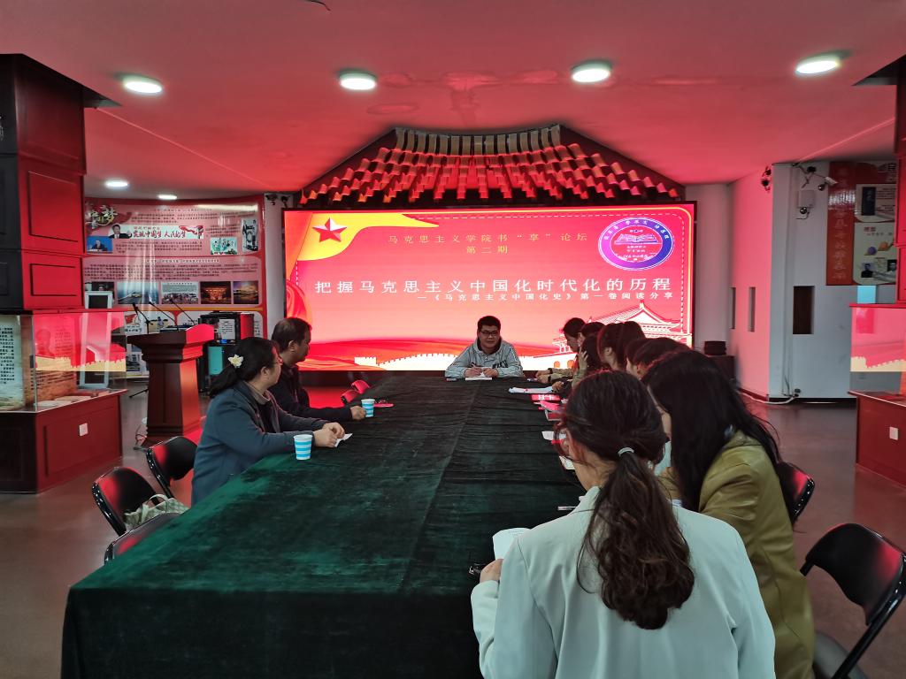 3月30日下午,马克思主义学院在国情国史体验馆如期举行第二期研究生书“享”论坛。论坛以“把握马克思主义中国化时代化的历程——《马克思主义中国化史》第一卷阅读分享”为题展开。研究生导师赵东喜、元焕芳以及全体22级全日制研究生参加论坛活动。