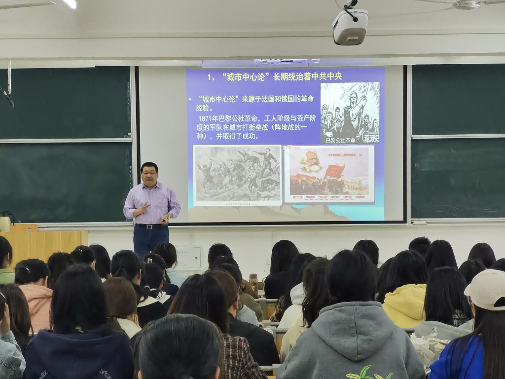为进一步提高广大教师教育教学水平,持续提升我校思政课教学质量,4月21日上午,马克思主义学院在弘毅楼A#合一教室举行思政课教学示范课。本次示范课特别邀请陕西省委讲师团特聘教授、全国首届思政课教师讲课大赛特等奖获奖者、长安大学马克思主义学院姜建芳教授主讲。学院班子成员、全体思政课教师和部分兼职教师观摩了课程。活动由副院长刘中元主持。