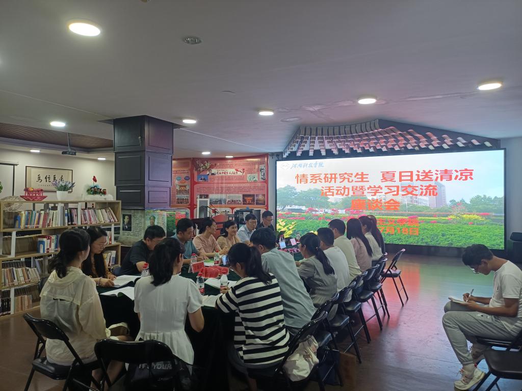炎炎夏日,学院2022级、2023级非全日制研究生暑期集中学习正在有条不紊地进行中。7月18日下午,学院在国情国史体验馆组织召开研究生座谈交流会,向研究生传递了学院对大家学习生活的关心,为同学们在这个夏日送上清凉。学院党委书记吴玲玲、院长王冰蔚、党委副书记刘中元、副院长张希中、研究生秘书张静、导师代表王鑫宏、尹璐出席座谈会,来校集中学习的12名非全日制研究生以及暑期留校的2名全日制研究生参加座谈会。座谈会由刘中元主持。与会研究生分别汇报了个人的学习情况。