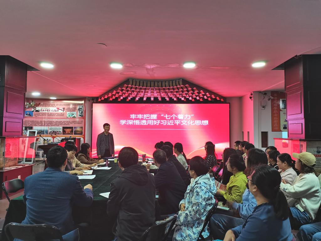 会上,副院长张希中以《牢牢把握“七个着力”,学深悟透用好习近平文化思想》为题,从“着力加强党对宣传思想文化工作的领导”“着力建设具有强大凝聚力和引领力的社会主义意识形态”“着力培育和践行社会主义核心价值观”“着力提升新闻舆论传播力引导力影响力公信力”“着力赓续中华文脉、推动中华优秀传统文化创造性转化和创新性发展”“着力推动文化事业和文化产业繁荣发展”“着力加强国际传播能力建设、促进文明交流互鉴”等七个方面,为全体党员作了一堂精彩纷呈、“干货”满满的讲座。