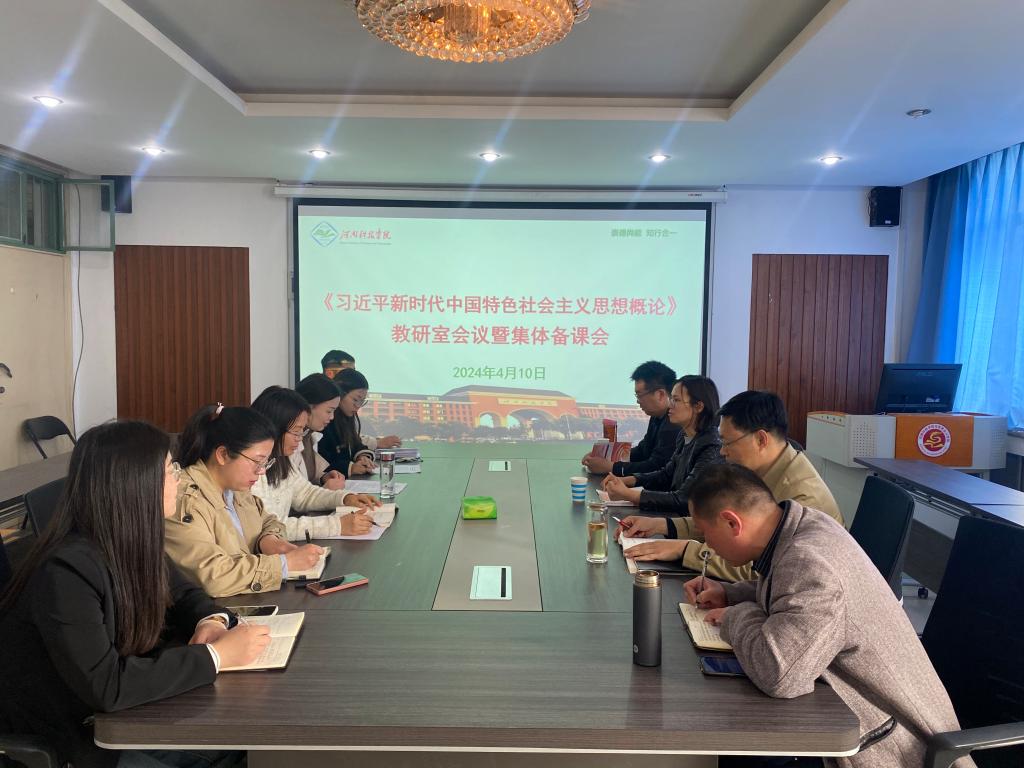 为充分发挥思政课作为立德树人关键课程的作用,坚持不懈用习近平新时代中国特色社会主义思想铸魂育人,4月10日上午,习近平新时代中国特色社会主义思想概论教研室在0号楼804会议室召开全体会议暨集体备课会。马克思主义学院副院长张希中,教研室专兼职教师参加会议。会议由教研室主任赵萌主持。