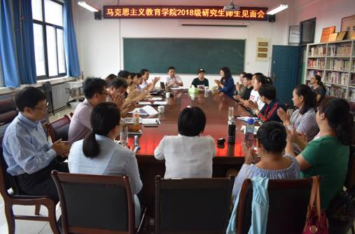 9月14日上午,马克思主义教育学院2018级研究生师生见面会在8号楼508会议室顺利举行。见面会由我院院长王冰蔚教授主持,我院党总支书记郭立、副院长孙喜英出席,我院硕士研究生导师、全体教师及2018级研究生参加。